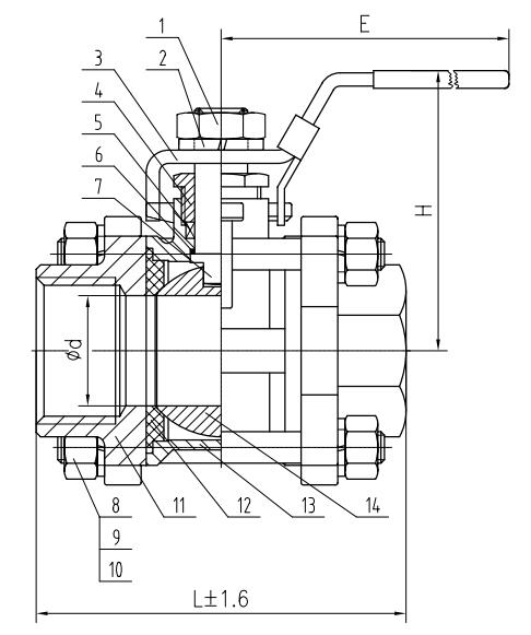7 | Stem | 304/316 | 14 | Ball | 304/316 |